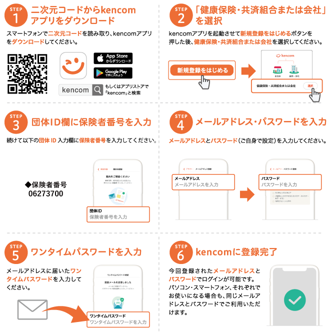利用にはユーザー登録が必要です。kencomアプリをダウンロードし、ご登録ください。
